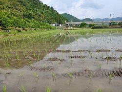 代掻き???何だ?と調べたら、代掻きとは、田起こしが完了した田んぼに水を張って、土をさらに細かく砕き、丁寧にかき混ぜて、土の表面を平らにする作業なんですって。稲をしっかりと育てるための行う工程なんだって。その代掻きをする3日前くらいに、田んぼに水を入れておくらしく朝早くから川の水止めを外しにお母さんが出かけた。あとから田んぼに行ってみると田んぼの周囲を起こしたところに水が入ってきていた。